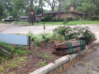 Sometime early Friday morning May 8, the neighborhood identity sign at Treasure Rd and S. Glenbrook was hit by a vehicle and severely damaged. This accident has been filed with the Garland Police Dept. as a “hit and run” because no one has identified themselves as the responsible party.