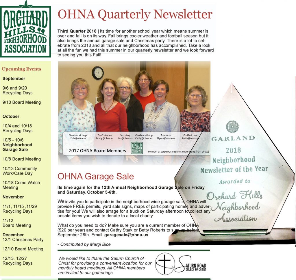 Garland Neighborhood Newsletter of the Year