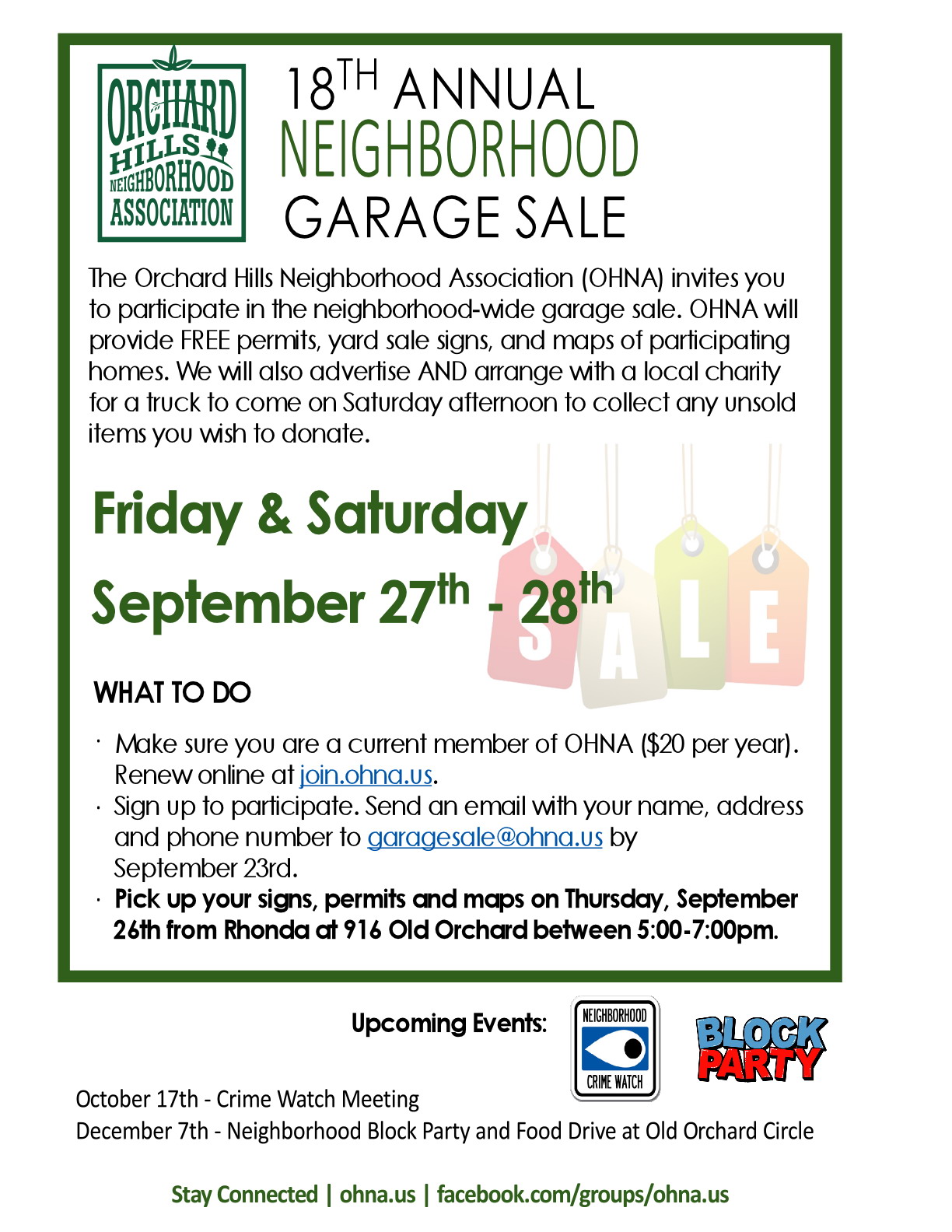 Neighborhood Garage Sale Reminder – September 27th – 28th